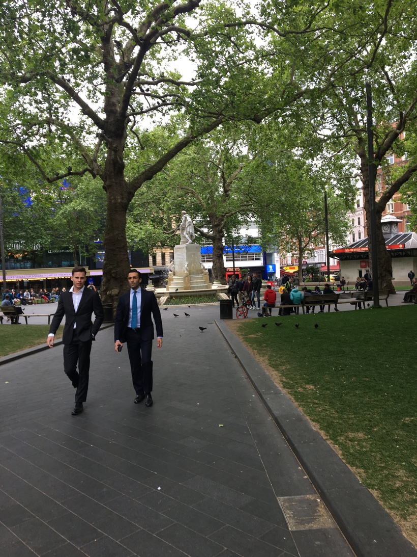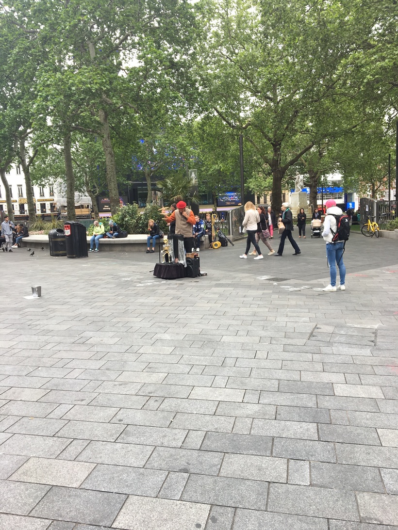 Площадь Лестер-Сквер расположена недалеко от Трафальгарской, в глубине улиц. Площадь окружена театрами, казино и магазинами. Почему-то я думала, что она менее загруженная, чем две другие, более центральные и известные и конечно, ошиблась.