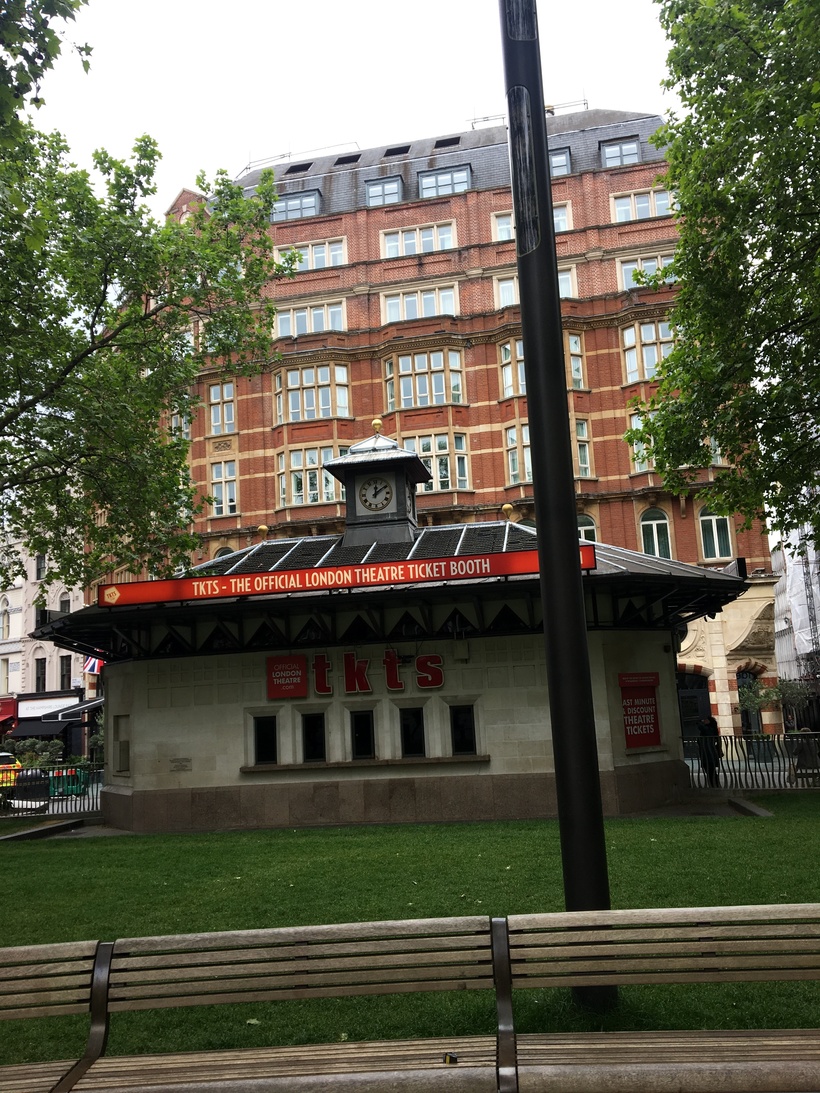 Тут тоже была масса народу, просто удивительно, почему так. Оценить полностью простор и красоту площади Лестер-Сквер можно пожалуй только ранним утром. Наверное я так и сделаю, в очередной визит в Лондон. Встану в шесть утра и пойду гулять по центру. Все магазины будут закрыты и можно будет посмотреть на Лондонский центр другими глазами.На другой стороне площади был расположен павильон в котором продавали билеты во все театры города.