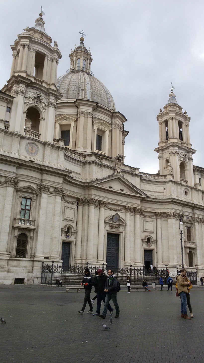 Фонтан прекрасно гармонирует с расположенной возле него белоснежной церковью Святой Агнессы (автор – современник Бернини, Франческо Борромини). Церковь с двумя очень красивыми белоснежными колокольнями. Советую посетить, церковь интересна своей историей, богато украшена. Кстати, здесь можно купить проспект на русском языке (за 1,5 евро).