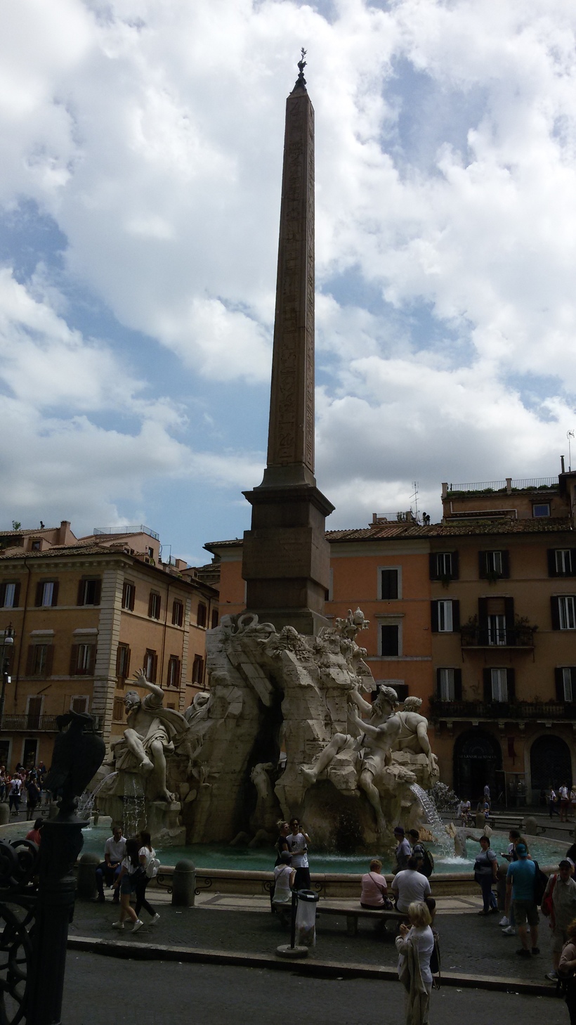 Визитной карточкой этой площади можно назвать фонтаны. Их здесь целых три. Самый известный – фонтан Четырех рек – творение Джованни Лоренцо Бернини. В центре фонтана огромный обелиск. Его поддерживают четыре мощные фигуры, расположенные на скалах – это образы великих рек: Дуная, Ганга, Нила и Ла-Платы. Реки символизируют четыре континента.