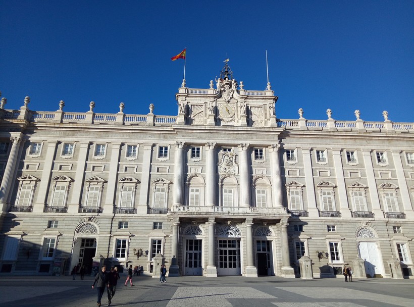 Моя первая встреча с солнечной Испанией, конечно, началась со знакомством со столицей. Первым делом было решено отправиться в Королевский дворец. Это самый настоящий дворец в центре города. В настоящее время там не живет королевская семья, но периодически проводят разные приемы (как любят говорить в России) на высшем уровне.
