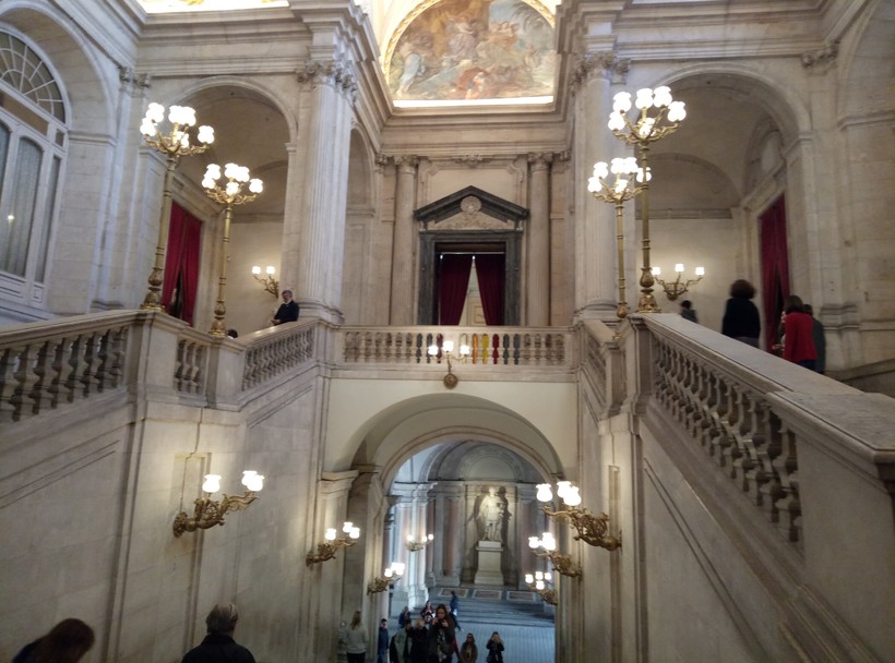Королевский дворец – одна из главных достопримечательностей Мадрида. Возможно, посещение без экскурсии проигрывает по содержанию, но впечатления от увиденного долго будут греть душу. Простор залов, высокие потолки, изумительная роспись потолков, со вкусом обставленный интерьер с предметами искусства и роскоши в разумных масштабах. Те, кто был в Екатеринском дворце в Царском селе, поймут меня, и еще больше потом оценят широту русской души.
