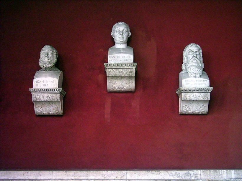 - Вальхалла. П-образная открытая галерея с колоннадой. Вдоль ее единственной стены выставлены бюсты знаменитых немцев во главе с Людвигом I, при котором она и возникла. Кстати, Лугом Терезы это место названо в честь супруги короля, которую он очень любил, хоть и был большой бабник:)