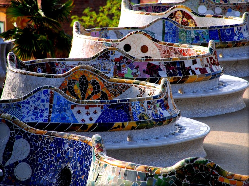 Пряничные домики, необычные лестницы, а изогнутые скамейки, вымощенные разноцветными кусочками керамики – это же прелесть что такое! Поднимаешься наверх, а там вид на Барселону. Один из прекраснейших видов на город, да еще и в обрамлении башенок Гауди. Классика. Увидели такое – вот это она и есть, Барселона.