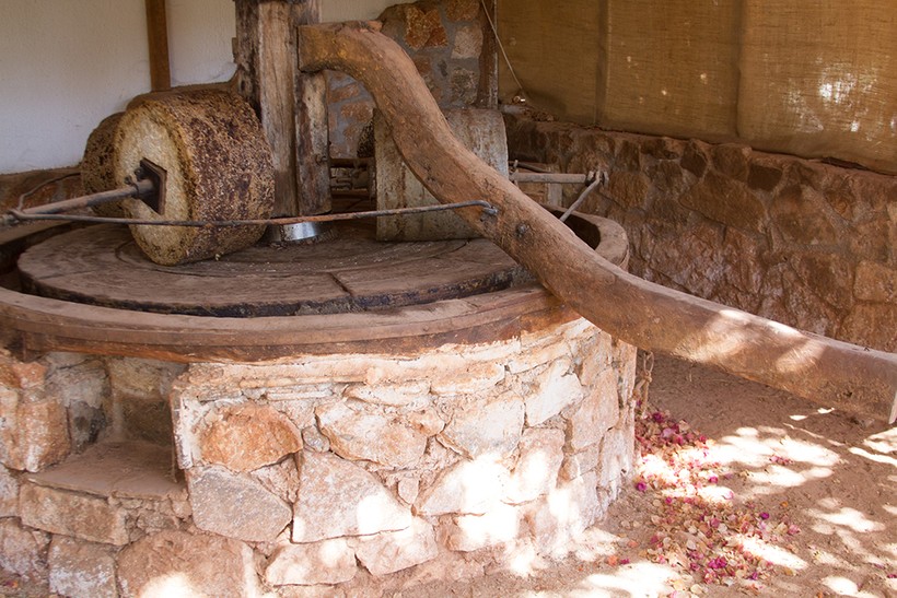Ну ладно. Что там есть. Во-первых, аутентичная система производства оливкового масла, управляемая осликом. Ослика запускают не всегда, при нас этого не делали. Стоит телевизор, на котором идет короткий фильм о том, как раньше производилось масло, и как это делается теперь, с помощью современных средств. Прогресс не стоит на месте! Как и ослик, которого если уж впрягали, то надолго.