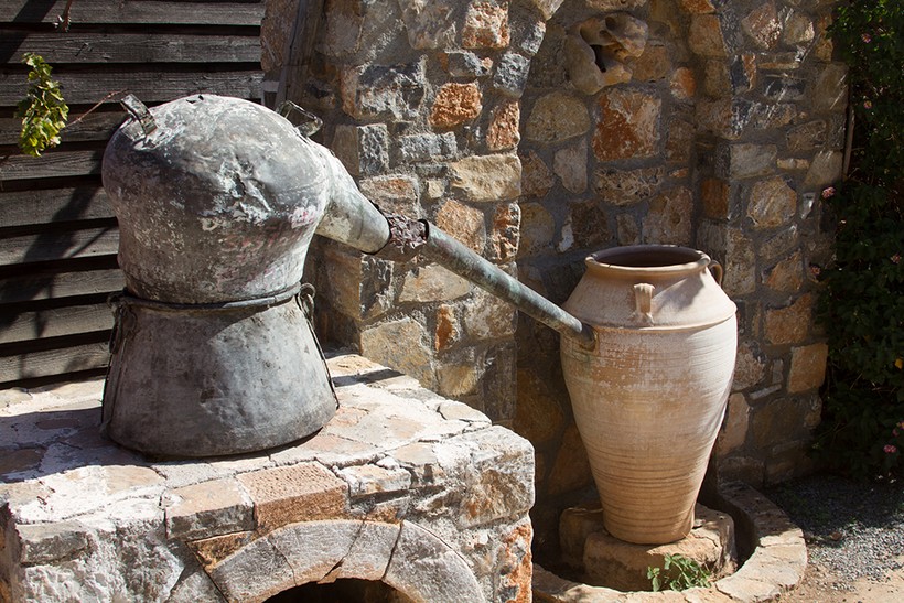 Посмотреть и узнать подробности очень любопытно. А мужа привела в восторг штука для перегонки ракии, тоже весьма популярного греческого напитка. Кроме того, можно посмотреть бассейн, где давят виноград. Периодически на ферму зовут желающих это сделать, когда наступает сезон и пора извлекать из винограда сок. Не знаю, правда ли вино из вот так «исторически» давленого винограда самое лучшее, критские вина вообще очень неплохие. Может, и в этом дело.