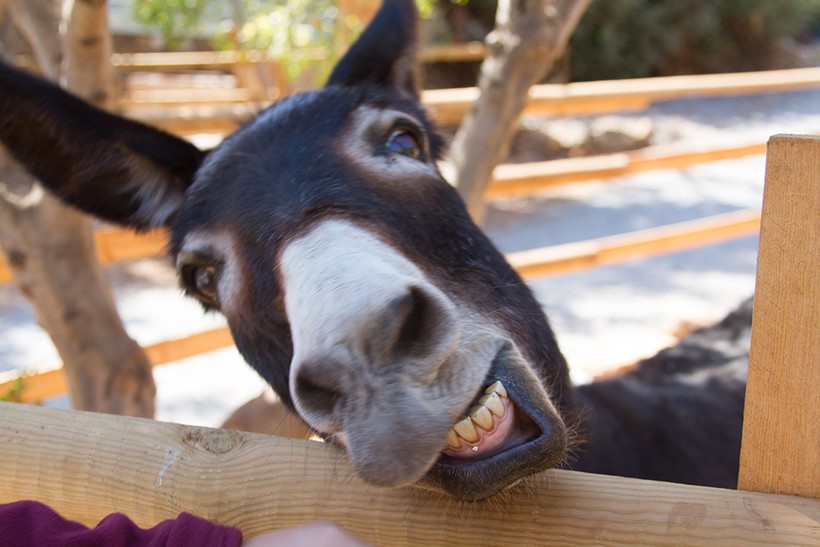 Тут же находится мини-зоопарк и загончик с осликом. Ослика зовут Дора, и она дружелюбна и прекрасна. Пыталась нас облизать, выпрашивала вкусняшки и спокойно дала себя погладить.
