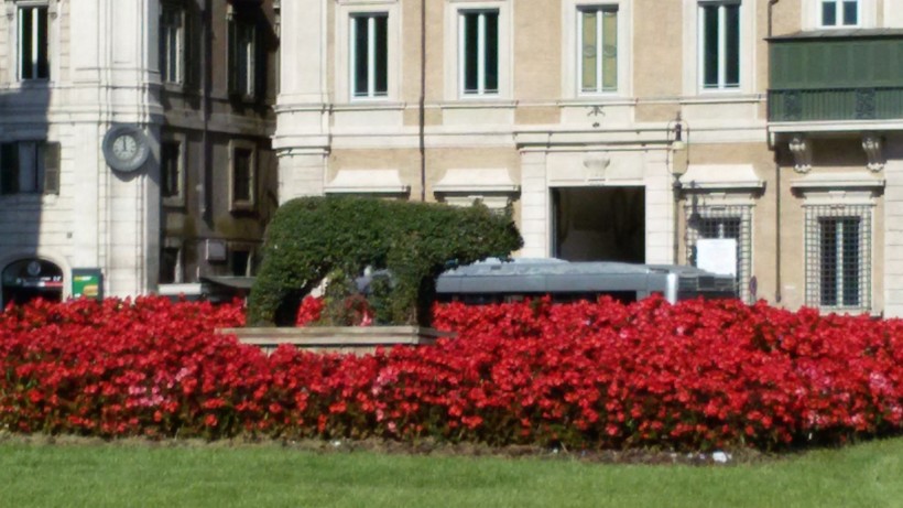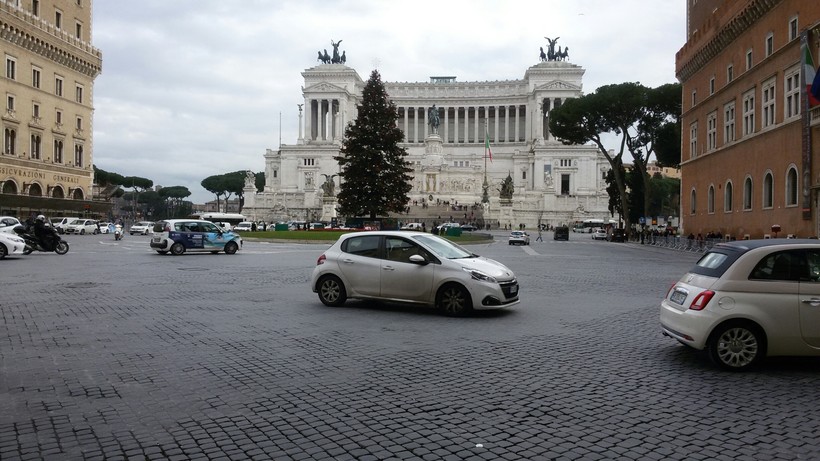 В центре Piazza Venezia - зеленый газон, который летом украшают цветочные клумбы в виде флага Италии, а зимой, перед Рождеством, на нем устанавливают главную городскую елку. Этой осенью я еще заметила на газоне скульптуру из растений - Капитолийскую волчицу, ближе к Рождеству ее убрали.