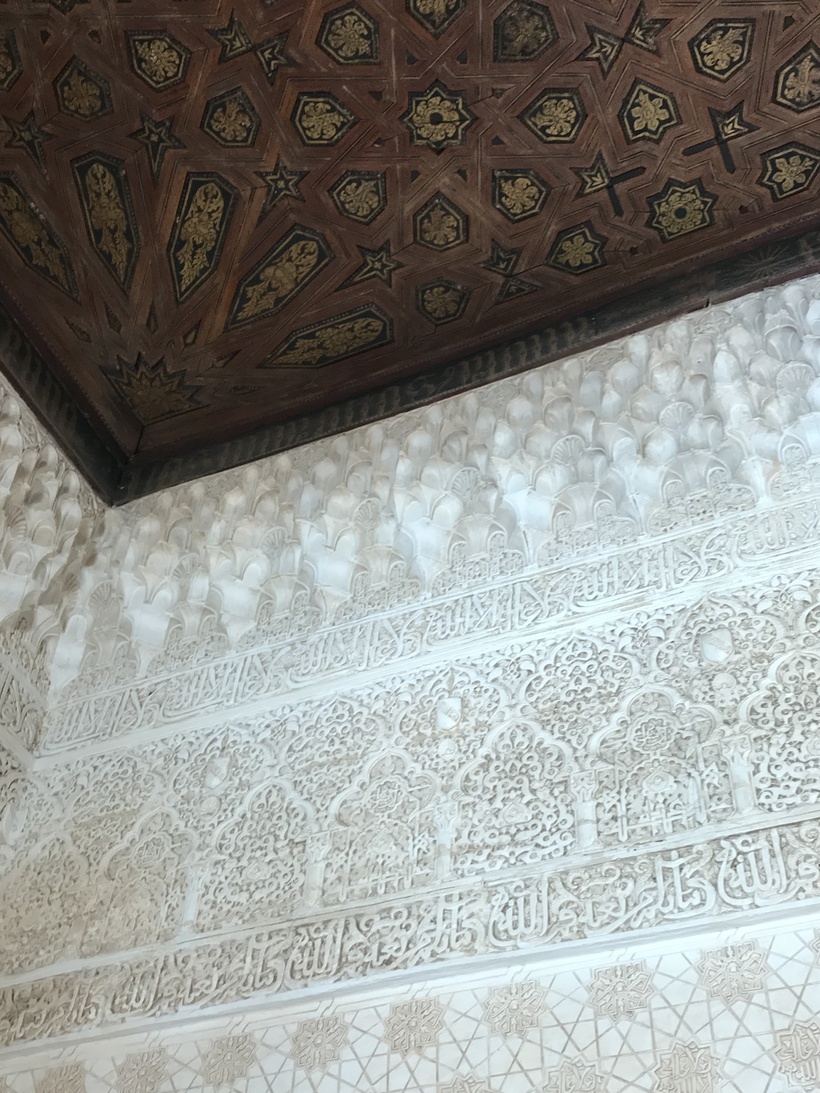 Плитка, дворики, бассейны и всевозможные конструкции с водой выглядят завораживающе. Если бы не множество туристов, отсюда не хотелось бы уходить. Арабская вязь очаровывает с первого взгляда.