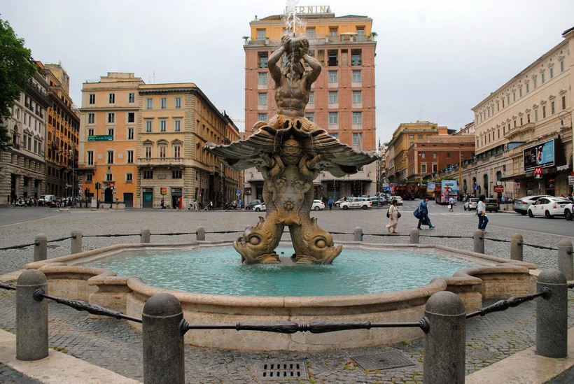 Когда вы попадаете на площадь Барберини, первое, что бросается в глаза – высокий мощный фонтан необычной формы. Это - фонтан Тритона работы великого скульптора Джованни Лоренцо Бернини. Установленный в центре площади, фонтан доминирует на ней.