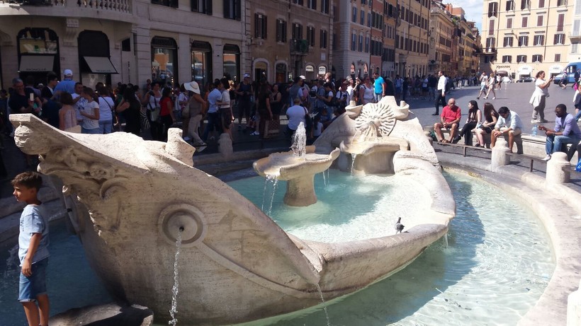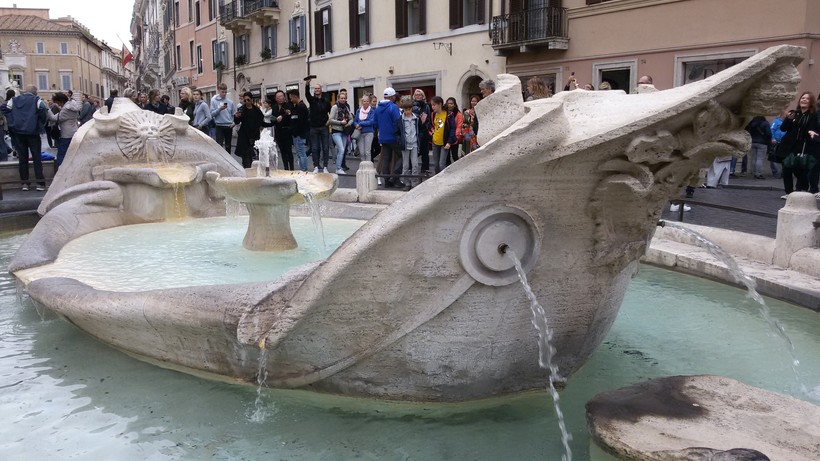 Этот фонтан я считаю одним из самых красивых в Риме. Полузатопленная лодочка из белого мрамора на фоне бирюзовой воды в овальном бассейне обладает какой-то особенной притягательной силой.