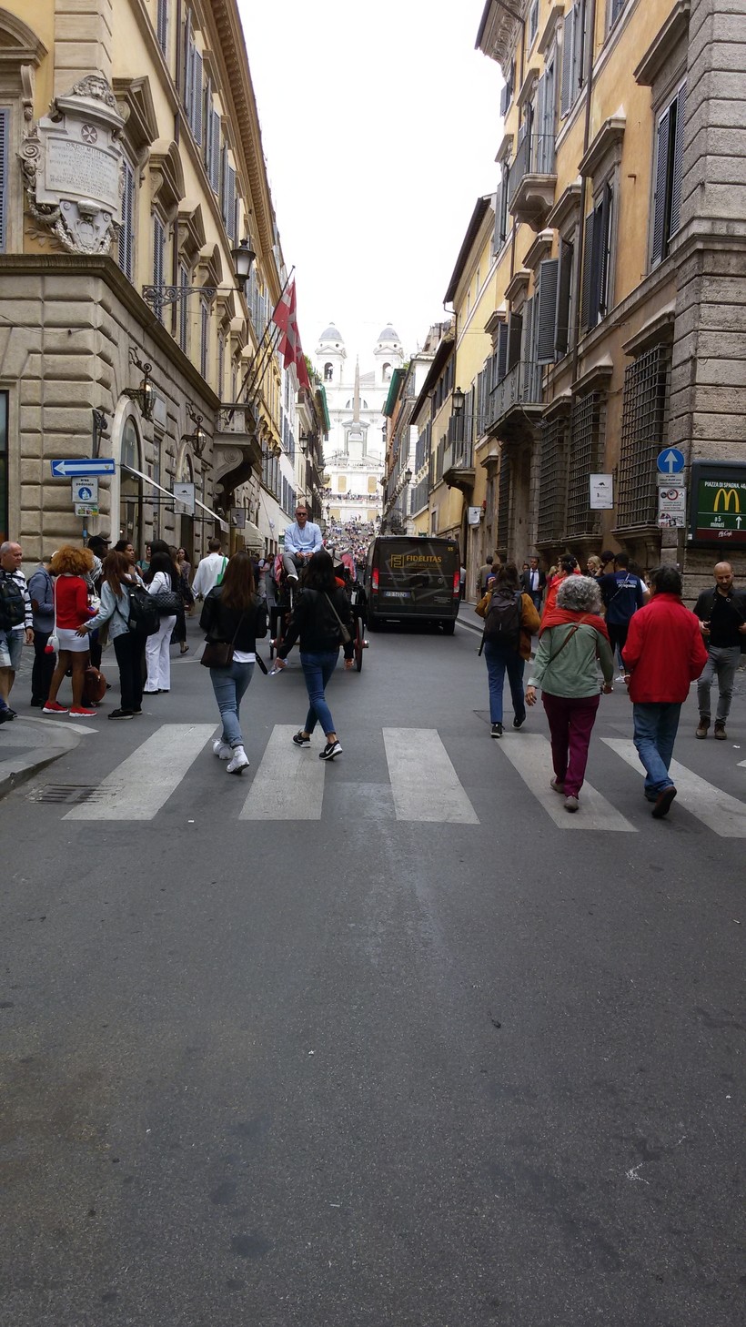 Как и многие римские улицы, Via dei Condotti довольно короткая. Из плюсов - можно не тесниться на узких тротуарах, а идти по проезжей части. Правда, машины проезжают иногда, нужно быть осторожней.