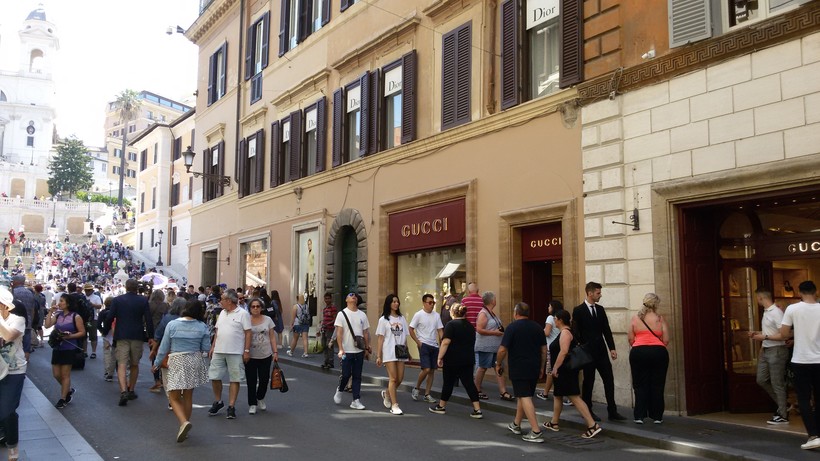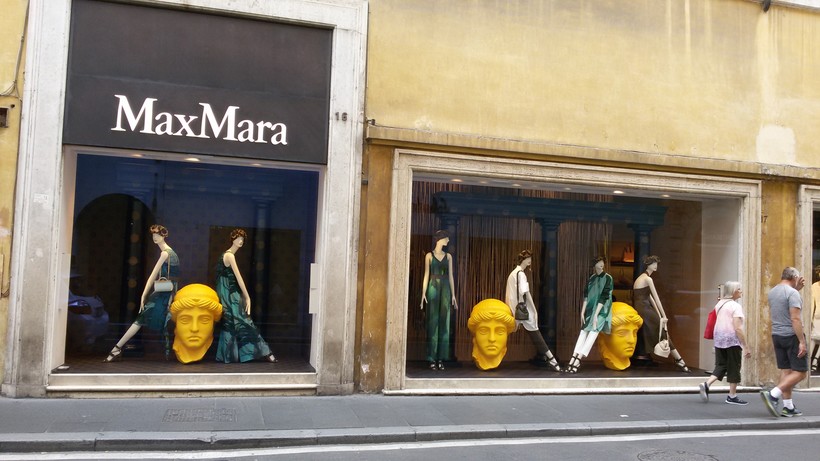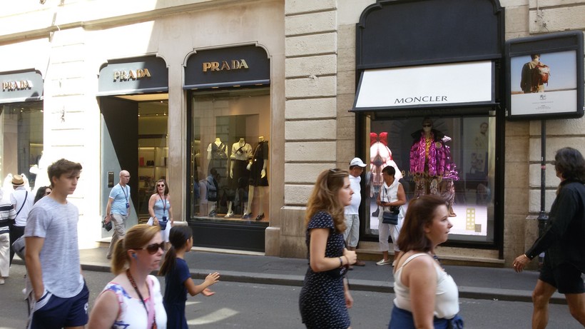 Оказывается, есть и такое развлечение в Риме - смотреть на витрины дорогих магазинов. Рассматривать одежду на манекенах, приглядываться к ценникам внизу и удивляться немыслимым цифрам, разводя руками... И лучшее место для этого - конечно, же, Via dei Condotti. Ведь здесь находятся бутики самых престижных и дорогих марок одежды - Dior, Prada, MaxMara, Gucci, Moncler, Alberta Ferretti, Dolce & Gabbana...
