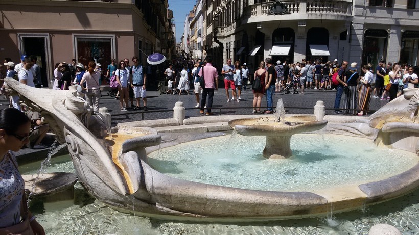 А, когда поднимаешься по испанской лестнице, делаешь остановки на разных ее уровнях, чтобы отдохнуть и полюбоваться видами, то в центре панорамы, за фонтаном «Баркачча», как раз видна Via dei Condotti.