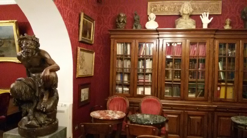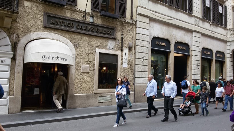 * В-третьих, здесь расположено историческое арт-кафе Греко - Antico Caffe Greco. Знаменито оно тем, что в нем бывали многие известные писатели, поэты, композиторы. Среди которых - Байрон, Гете, Бальзак, Стендаль, Шопенгауэр, Вагнер, Лист, Китс… А также наш классик - Николай Васильевич Гоголь, который за столиком этого кафе писал «Мертвые души».