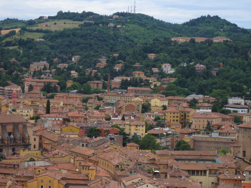 С удивительным городом Болонья, я познакомилась впервые, можно сказать случайно. Я отдыхала летом на море в Римини и, накупавшись и отдохнув несколько дней, захотела посмотреть, какой-нибудь интересный итальянский город. Он Римини ехать на электричке до Болоньи, совсем недалеко, поэтому я отправилась в самостоятельный тур в Болонью в один из солнечных летних дней. Город мне понравился практически с первого взгляда. До центра города идти от вокзала не больше десяти минут, по прекрасным крытым галереям. В Болонье такая особенность тротуаров, город весь в прекрасных галереях и это его неповторимая изюминка.