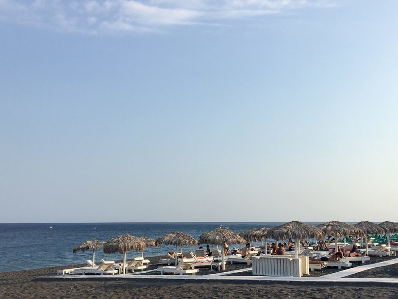 От того, что песок черного цвета, мне показалось, что он здесь горячее, чем на остальных пляжах Санторини.