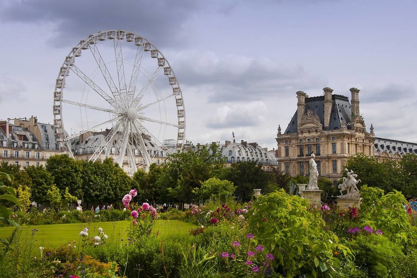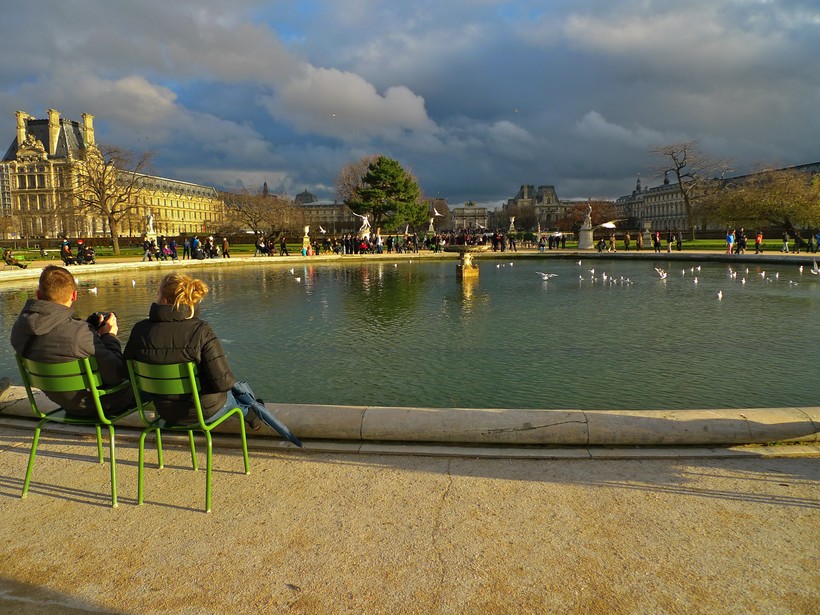 Плюс в том, что это очень большой регулярный парк, он находится в самом центре, найти его очень легко: отошли от Лувра - и вот вам сад Тюильри. И естественно, за счёт расположения и того, что здесь бывает просто огромное количество народу, он поддерживается в очень хорошем состоянии. Здесь вы не увидите никаких расколотых статуй, поломанных скамеек – всё это здесь исправлено. Очень зелёные газончики, на них можно поваляться, походить по траве, многие приходят сюда на пикник, хотя, конечно, это шумный центр.