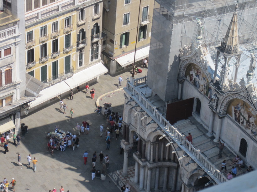 С высоты колокольни она казалось крошечной. Собор Святого Марка был виден отсюда в деталях и меня очень порадовало, что можно рассмотреть купола собора сверху.