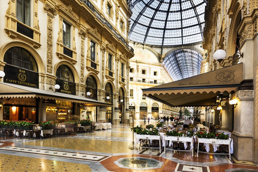 В галерее есть также изысканные кафе и рестораны. Ценник здесь, конечно же, выше, чем в среднем в Милане, но зато, это места с историей, со многих из которых открываются отличные виды на пассаж. Есть здесь и мишленовский ресторан, а еще первых в мире отель, удостоенный категории 7 звезд.