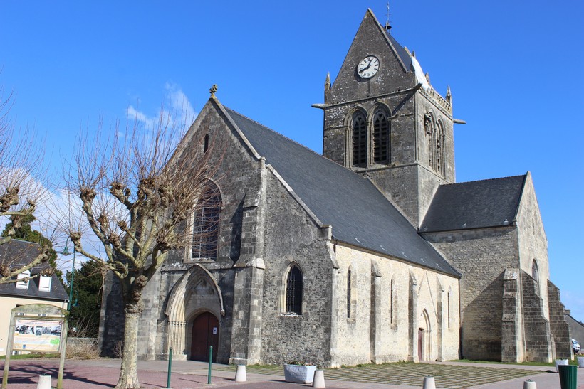 С этой церковью у меня вышло забавно. Я с ней познакомилась задолго до того, как увидела вживую. Я писала книжку о Нормандии, и эта церковь выступала одним из объектов, которые исследовали мои герои. Поэтому я проконсультировалась со своей подругой, которая в Нормандии постоянно живет, и она мне рассказала кучу интересных подробностей об этом местечке. Ну, и когда я в очередной раз прилетела туда вживую, естественно, мне захотелось увидеть это замечательное архитектурное сооружение. Поэтому мы сели в машину и поехали осматривать городок Сен-Мер-Эглиз и церковь, которая там находится.