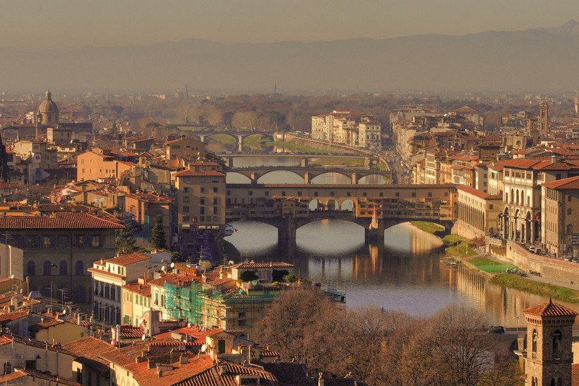 Во-первых, он действительно самый старый и построен в 14-м веке (в 1345 году), а до этого два раза перестраивался из-за наводнений на реке Арно. Он построен в самом узком месте реки Арно и соединяет два квартала города.