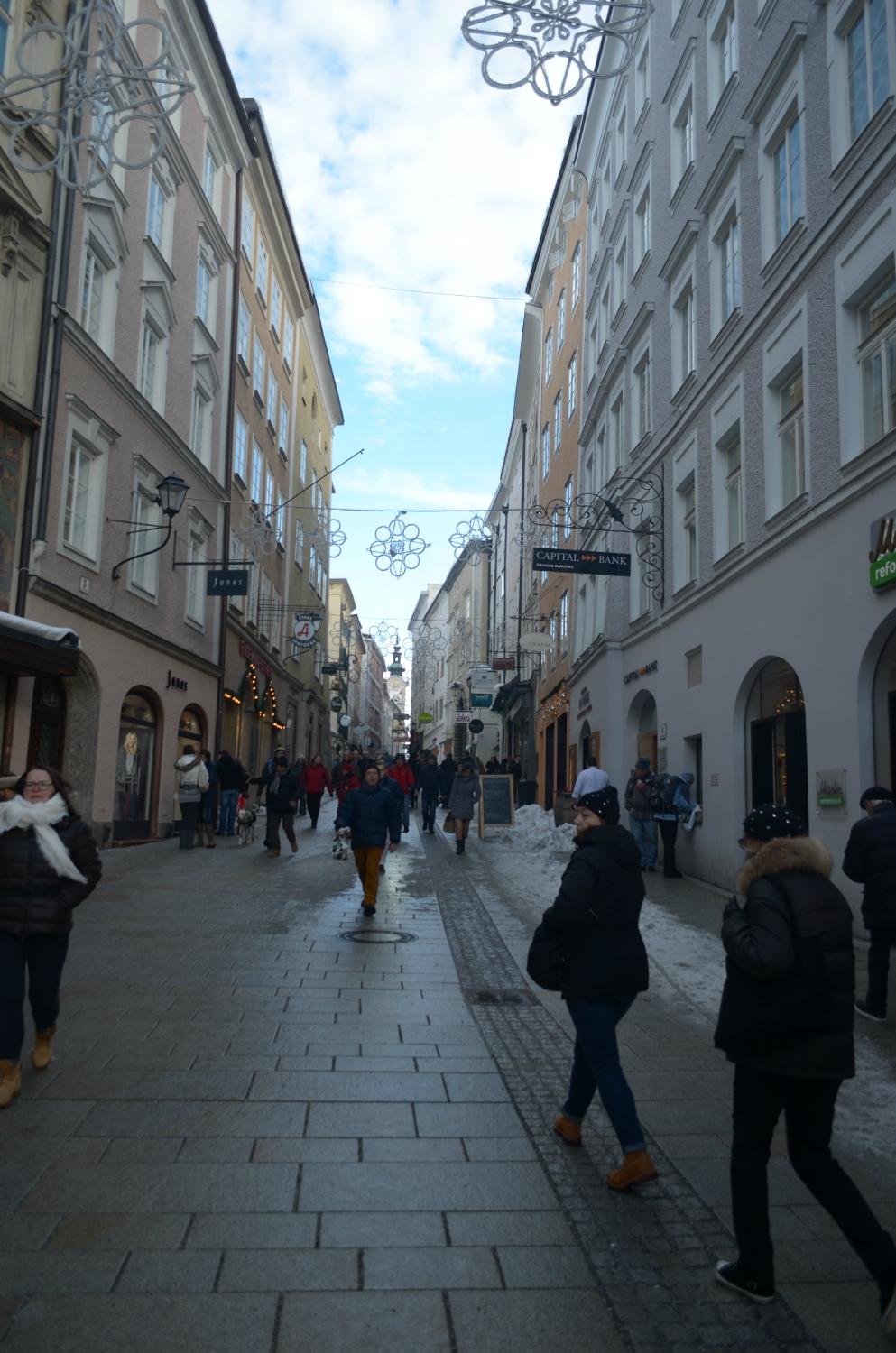 Плюсы этого места: удобное расположение - рядом сразу несколько достопримечательностей (Капуцинерберг, Мирабельгартен, набережная у реки Зальцах). И, в то же время, до этой улицы достаточно удобно дойти пешком от вокзала Зальцбург-Хауптбанхоф, идти не долго, в районе получаса. На улице уютно, много интересных ресторанов и магазинов разного профиля (сувениры, сладости, одежда, обувь).