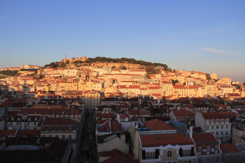 Лиссабонская крепость открывает умопомрачительные виды города. Я решила её покорить ближе к сумеркам. Хорошо, время работы позволяет: с весны по октябрь — с 9 утра до 9 вечера, последние месяцы осени сокращено расписание до 18. Вход недешевый — 8,5 евро, но открывающийся обзор того стоит. Студентам выгоднее — только 5. Детишкам меньше десяти лет вообще свободное посещение.