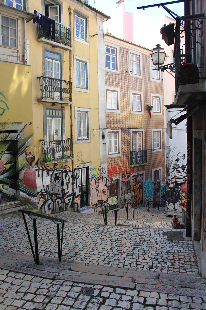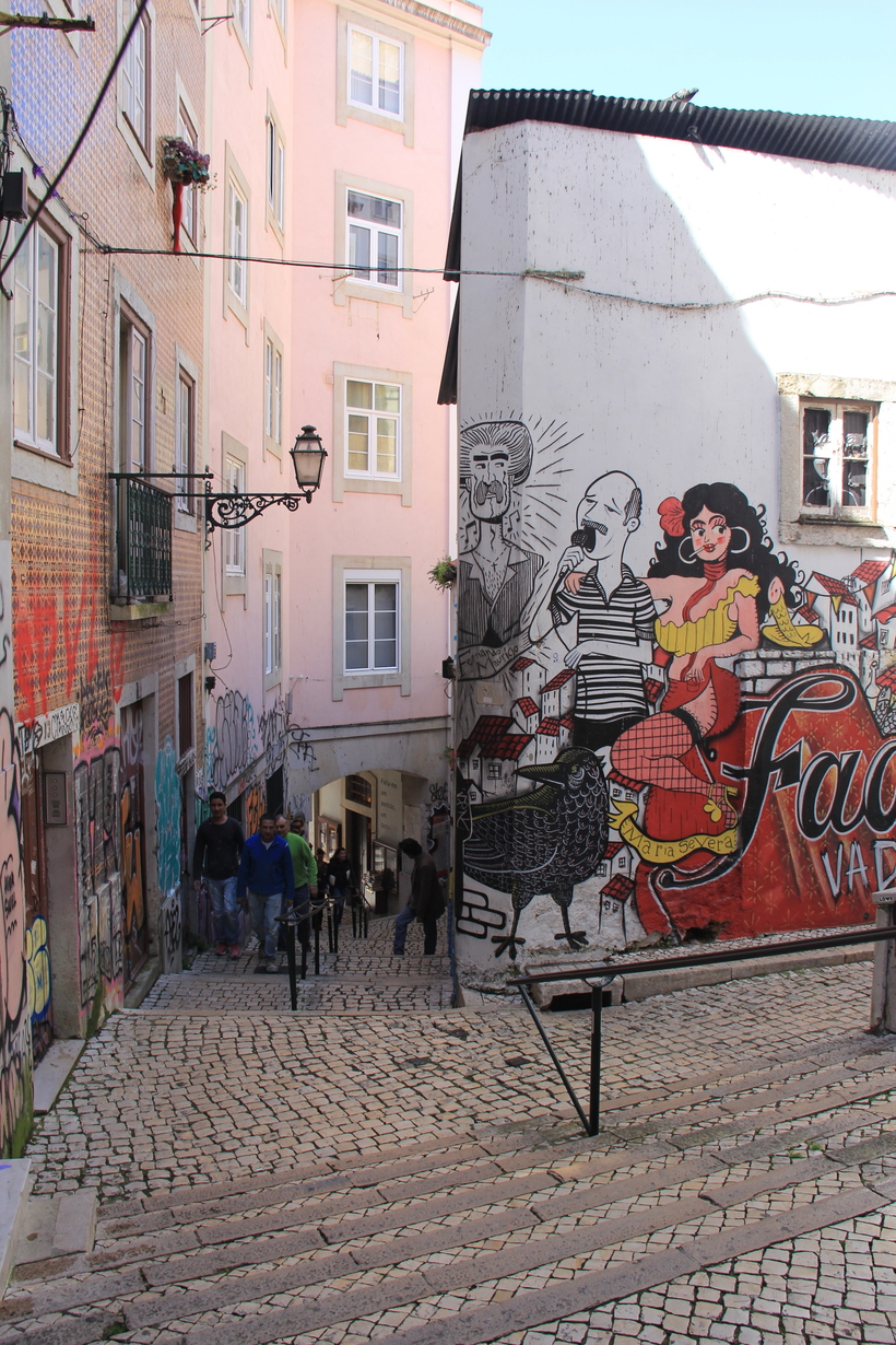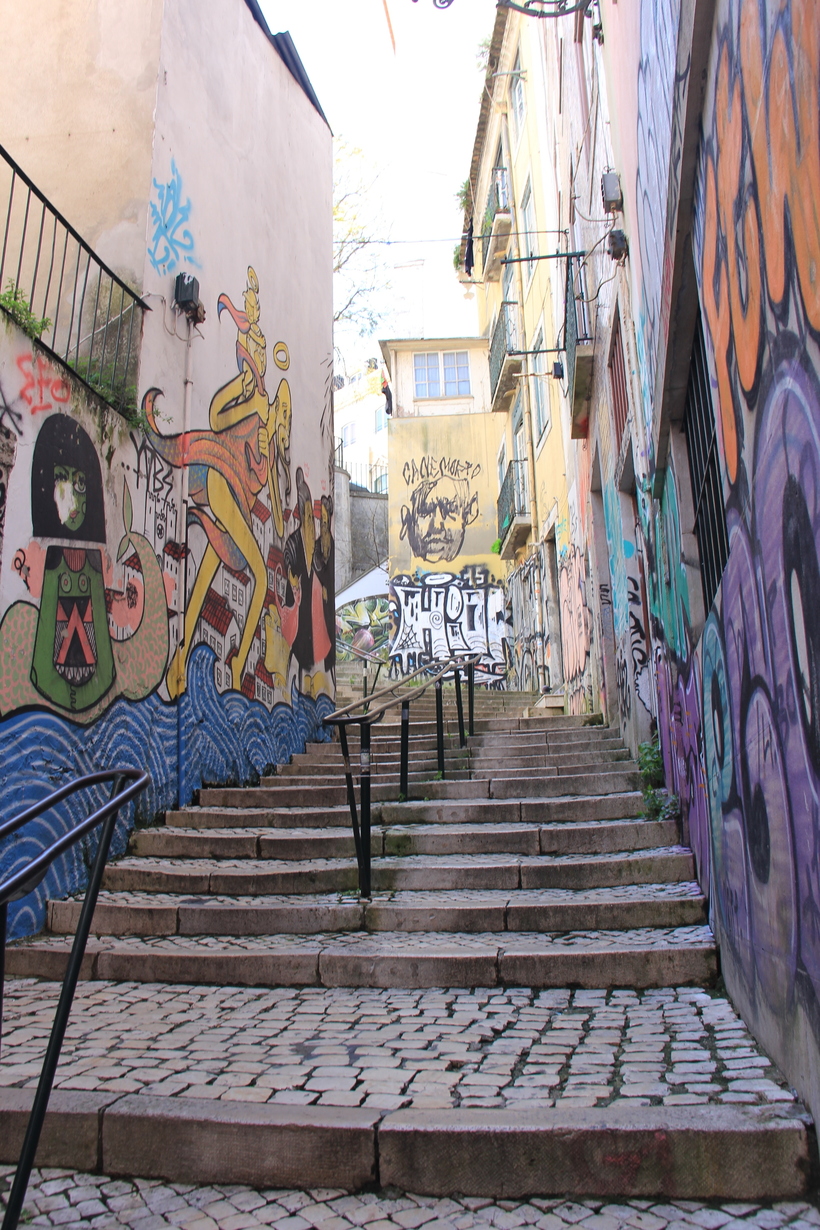 Свернув с площади Фигейра на улицу Rua da Madalena и пройдя несколько домов, мы увидели забавную лесенку-улочку с граффити.