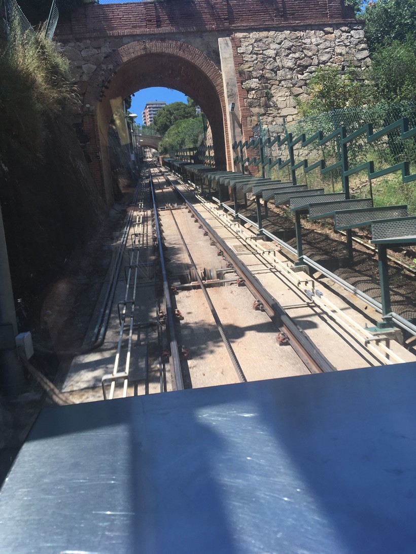 От площади Каталонии нужно сесть на электропоезд S2, доехать до фуникулера.