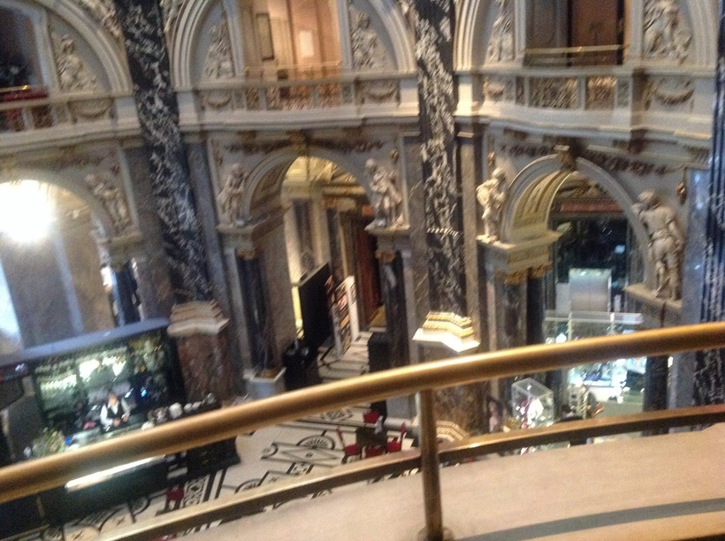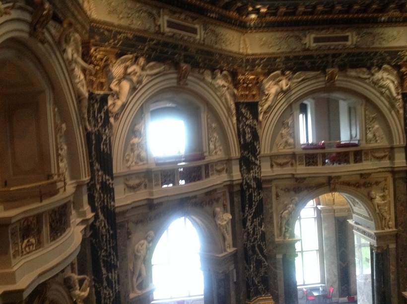 Под куполом прекрасная лепнина, видно что здание музея старинное и очень соответствует общему стилю Вены.