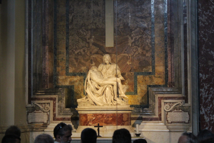 Недалеко от входа в Собор Святого Петра с правой стороны всегда много людей. И это понятно, как раз в этом месте находиться скульптура работы Микеланджело Буонарроти - «Пьета»!