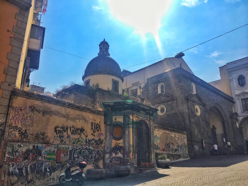 Дорога к этой церкви просто фантастическая, улицы довольно живописны даже по меркам Неаполя (все в граффити). Навигатор показал, что мы пришли, но церкви перед нами нет… или есть?