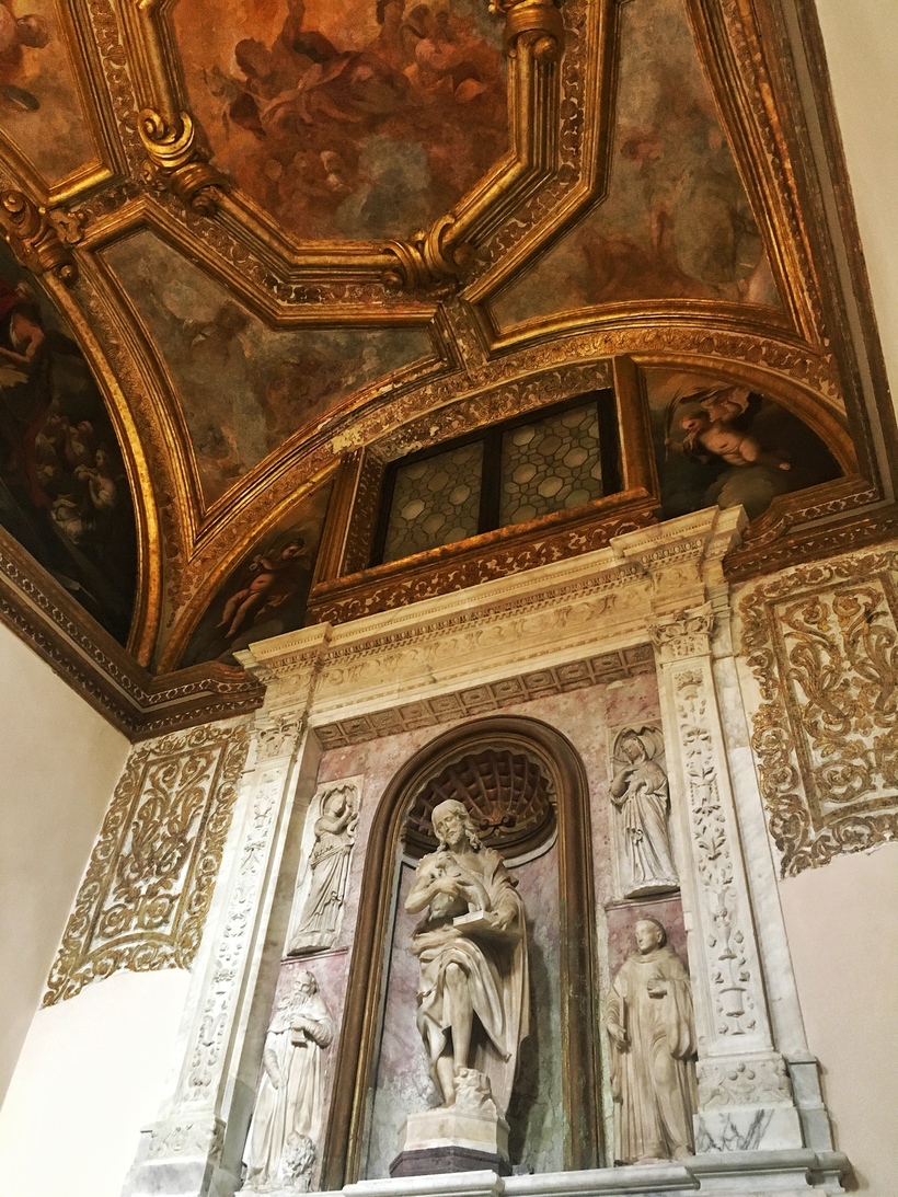 Не зря эту церковь называют музеем эпохи Возрождения. Тут и скульптуры, и фрески, потрясающей красоты барельефы и росписи, авторами которых стали известные скульпторы эпохи Ренессанса.
