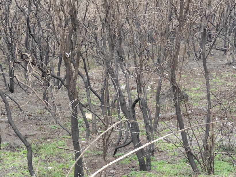 Склоны вулкана в некоторых местах покрыты деревьями с обугленными стволами. И хотя последнее извержение было в далеком 1944 году, периодически из недр Везувия вырываются свежие лавовые потоки, которые видимо и причиняют вред деревьям.