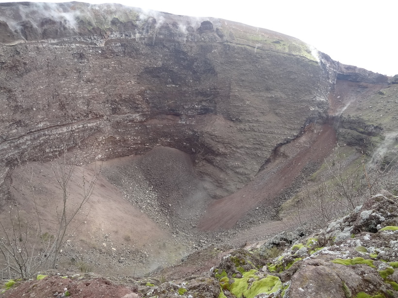Вулкан не так прост и имеет три конуса. Внешний, самый древний, сохранился лишь частично, внутри него находится конус Монте-Сомма, а уже внутри Соммы спит Везувий. Целая вулканическая матрешка )) Высота вулкана 1280 метров, но он уменьшается после каждого извержения. Перед извержением в 79 году Везувий был куда больше и стены Монте-Соммы были целы. Кстати в фильме "Помпеи" показан вулкан гораздо выше, обратите внимание. Историческая точность соблюдена.