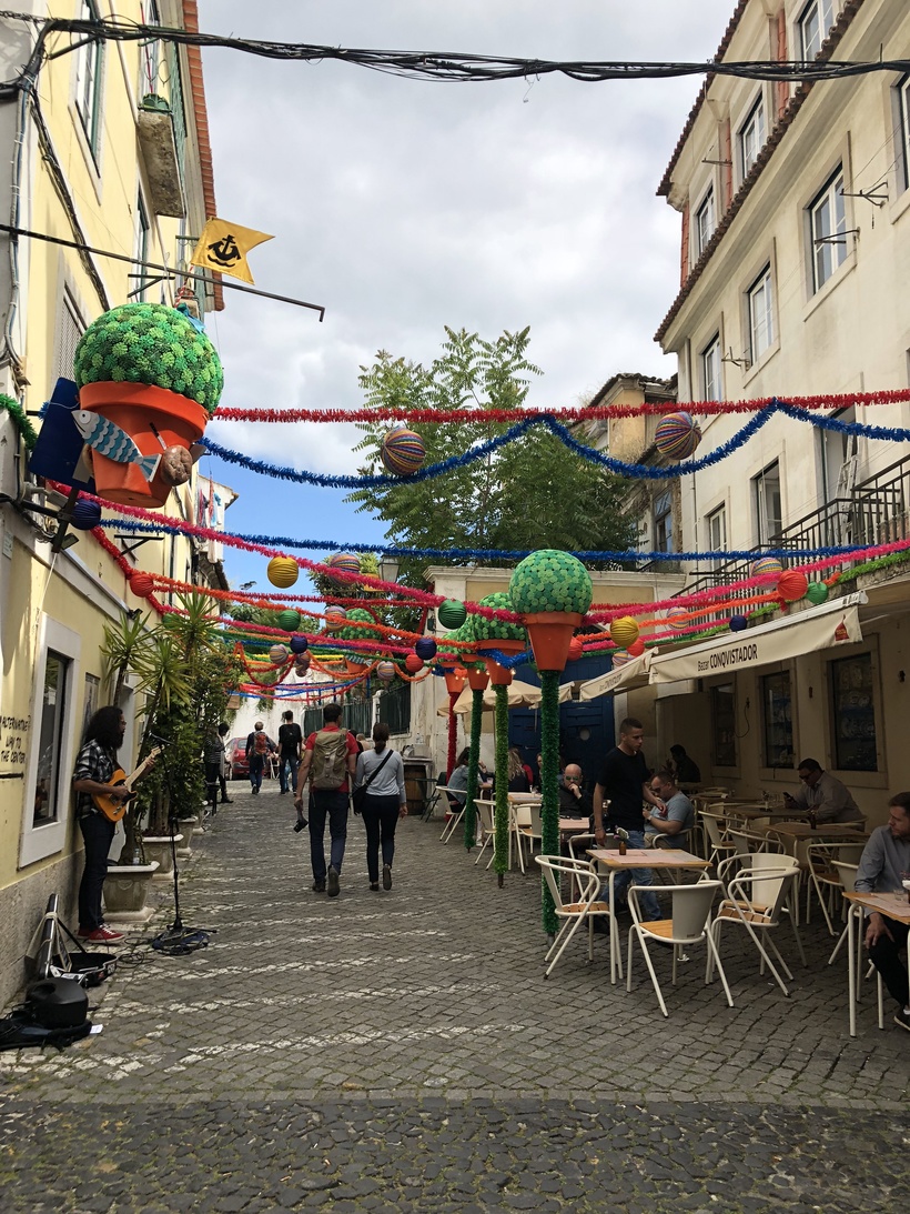 Настоятельно советую наведаться в Лиссабон в период с 5- 13 июня, в эти дни португальцы отмечают Праздник Святого Антония. Улицы украшают гирляндами и разноцветными флажками, жарят на свежем воздухе сардины и распивают ликер из маленьких шоколадных чашечек. Альфама - это эпицентр праздника, узкие улочки вечером забиты людьми, повсюду танцы и песни до утра, гуляют и стар и мал. Местные жители очень гостеприимны и радушны. Но предупреждаю, на выходных Альфама ломится от толп гуляк, кафешки и рестораны забиты и люди сидят буквально на земле, но это никак не портит картину и ощущения праздника.