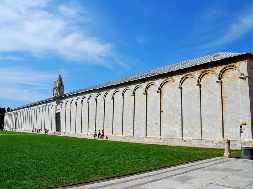 Кампосанто (Camposanto) - самое необычное и самое красивое кладбище из тех, которые мне довелось видеть. Оно расположено в северной стене, окружающей Площадь Чудес (Piazza dei Miracolli).