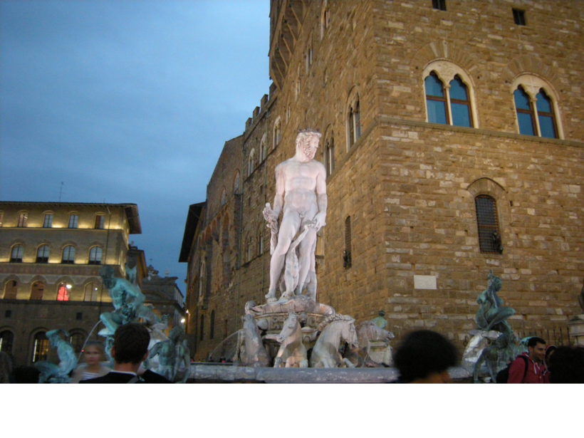 Несмотря на большие размеры и статус одной из главных площадей Флоренции, на площади Синьории было очень тихо и спокойно. Я не помню толпы, которая мешала бы друг другу, и необходимости быстро сфотографироваться, чтобы не заняли освободившееся место на фоне какой-либо достопримечательности.