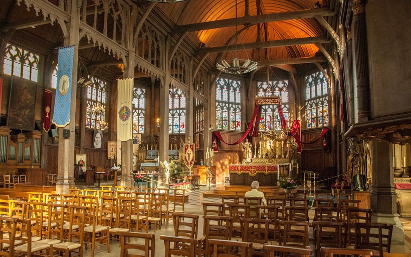 Это самая старая и самая большая деревянная церковь во Франции из сохранившихся. Она была построена в 15 веке и с тех пор не перестраивалась. Никогда не горела, слава богу, потому что действительно полностью деревянная.