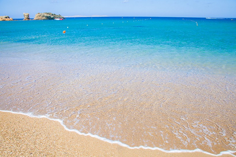Итак, едешь сначала по горам, потом местность становится всё более плоской, и, наконец, перед тобой пляж. Райское местечко на самом краю острова. То, что он далеко от больших поселений, никак не повлияло на обустроенность. Здесь есть все, что нужно: лежаки, зонтики, кафе, бесплатная стоянка, прокат водного инвентаря, аренда всяческих водных мотоциклов... И при том практически нет людей. Нет, они имеются в наличии, но большинство лежаков пустовало – а мы в тот раз, между прочим, в середине июля на Крит ездили! Самый сезон. Но нас такое отношение народа к этому пляжу только порадовало. Мы выбрали очень удачное место, плюхнулись на лежачки и придали себе форму морских звезд.