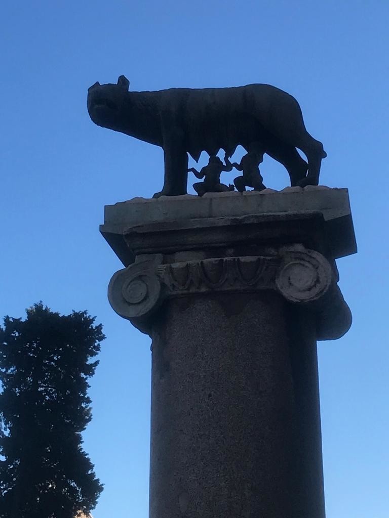И, кстати, знаменитая скульптура Капитолийской волчицы находится здесь же, на площади. Эта небольшая статуя находится слева от Дворца сенаторов, на высокой колонне, рядом с лестницей, ведущей в мэрию. Рассмотреть ее трудно снизу, а подняться выше нельзя - на ступеньках постоянно дежурит охрана.