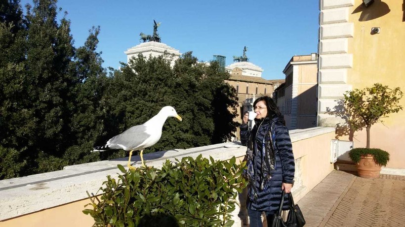 Что еще могу посоветовать тем, кто попадет на эту площадь? Выпить кофе на крыше Капитолийских музеев. Попасть в кафе на крыше можно и без билетов. На площади, перед Дворцом консерваторов, нужно повернуть направо, пройти немного, и увидите другой вход в музей. Поднявшись по лестнице на верхний этаж, попадете в кафе.