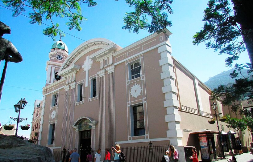 - Церковь Святой Марии Коронованной. Это главный католический собор в Гибралтаре. Первое здание на месте современного собора было построено в XV веке, но в XVII веке, когда британское правительство свергло мавров, здание снесли и построили новое, в готическом стиле. Оно до наших дней не сохранилось из-за нескольких масштабных реконструкций, в ходе которых стиль здания поменялся с готического на неоклассический. Церковь Святой Марии Коронованной сегодня — это здание бежевого цвета, построенное из кирпича. Особый интерес туристов вызывает колокольня церкви — она несколько выше основного здания, украшена арочными проемами и крышей в виде купола.