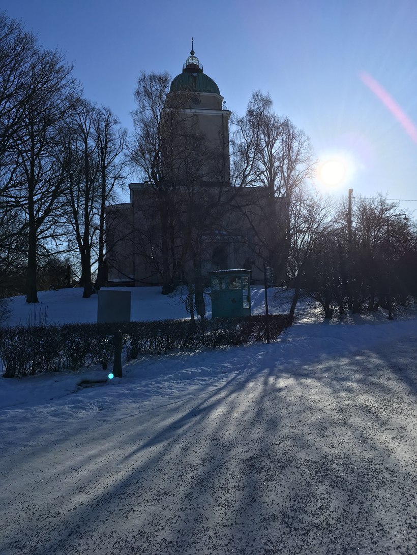 Во второй раз я приехала на этот остров одна, в феврале, рано утром. Мне нужно было въехать в Финляндию чтобы обкатать визу, автобус из Петербурга приехал на 2 часа раньше расписания и раньше заселения в хостел. И я решила отправиться на остров как только стало светло. Не смотря на холод -22 градуса, это было потрясающее время! Кроме меня на острове были только местные и сотрудники заведений, снег серебрился и хрустел под ногами, это было невероятно красиво. Руки замерзали в варежках внутри карманов, ноги двигались на автомате от холода, волосы, которые торчали из шапки были покрыты инеем, а фото я делала нажимая на сенсер телефона носом. Когда паром отходил из Хельсинки было видно как как плавает лед. Это очень красиво!