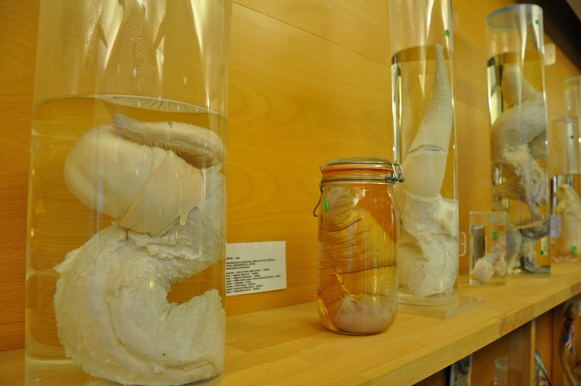 Часть органов представлена в виде законсервированных специальным образом образцов, что-то вроде тех, что бывают представлены в мединститутах или кунсткамерах.