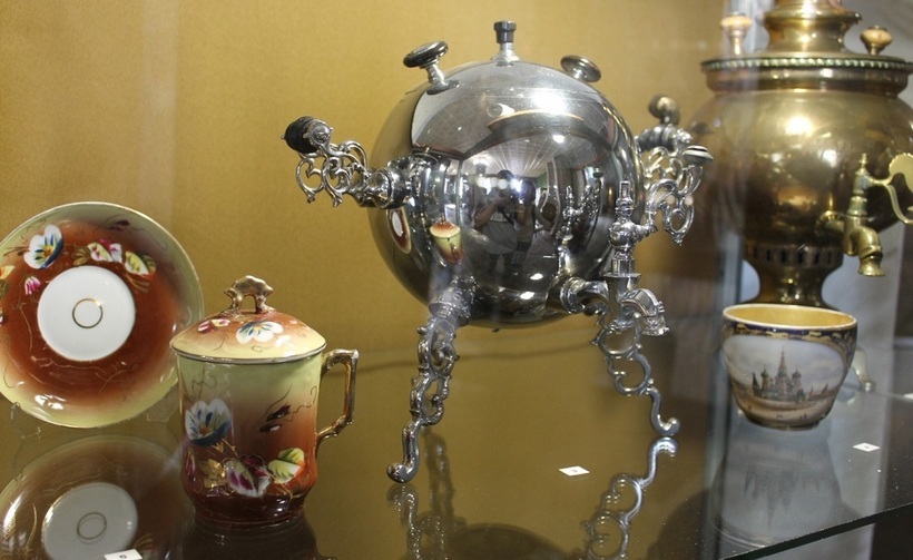 Помимо самоваров, в музее представлена экспозиция предметов для чаепития - чайных наборов, заварочных чайников, блюдец, чашечек и чашек.