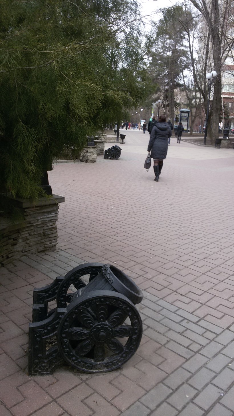 Если прогуливаться по Пушкинской не спеша, обращая внимание на детали, можно увидеть много любопытного. Интересны даже лавочки на красивых кованых ножках и урны в виде пушки.