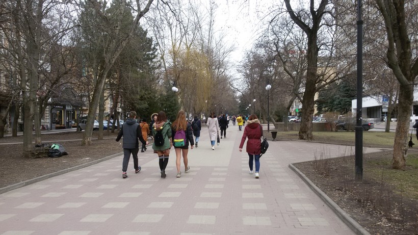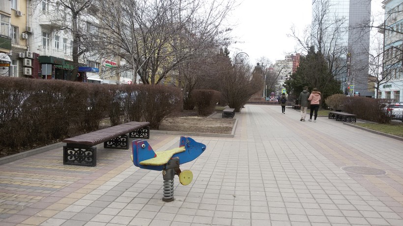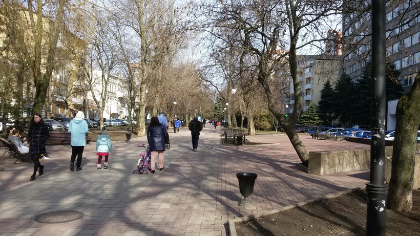 В Ростове-на-Дону, по моему мнению, не так много мест для любителей пеших прогулок. Улицы южного города довольно узкие, очень оживленные. В часы пик на многих из них такое столпотворение бывает, как на ярмарке в праздничный день. Хотя улицы интересные, колоритные, но не погуляешь так просто, не спеша. Потому что народ на них в другом ритме движется – все куда-то очень спешат, сбивая и снося все и вся на своем пути.