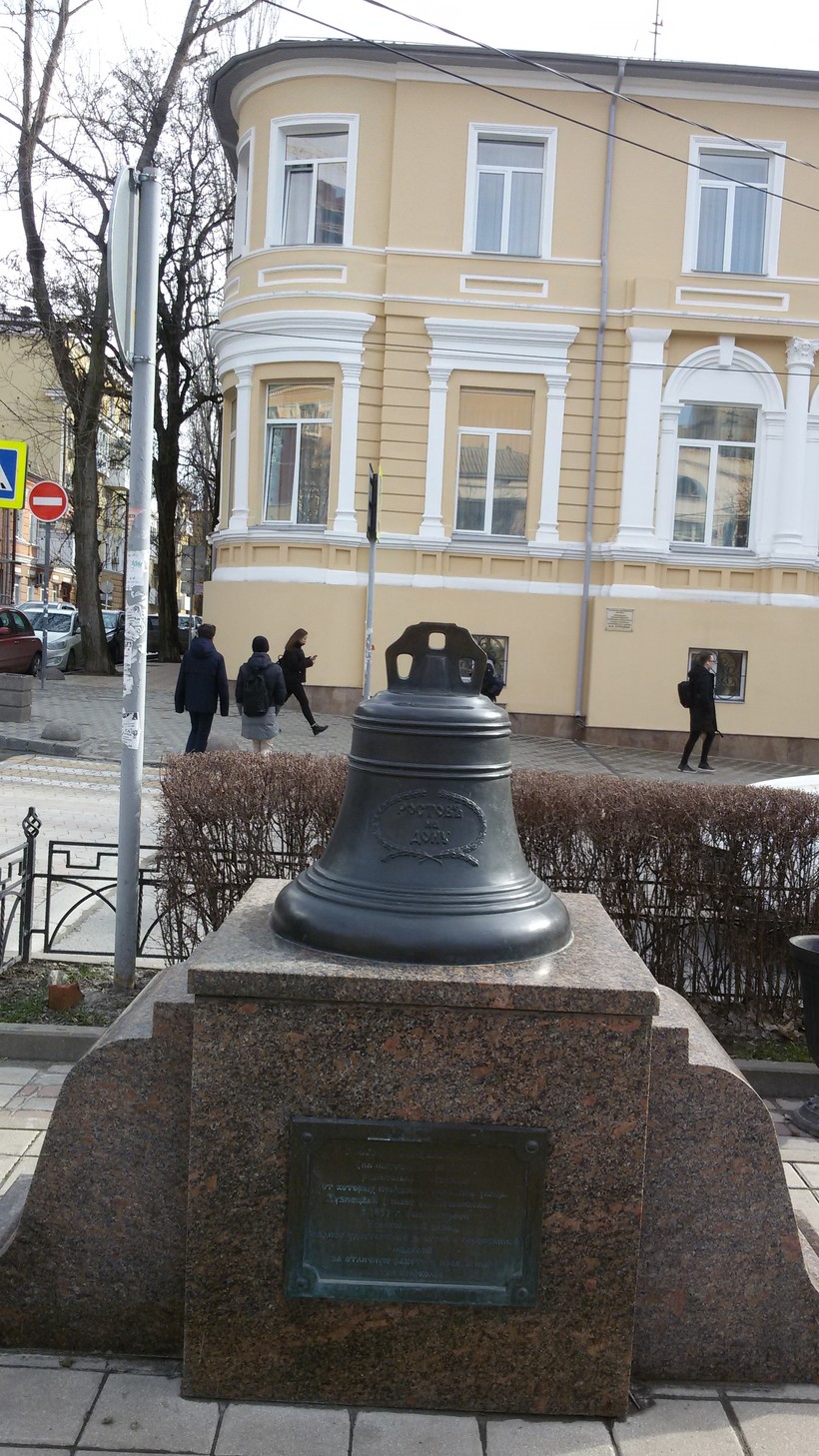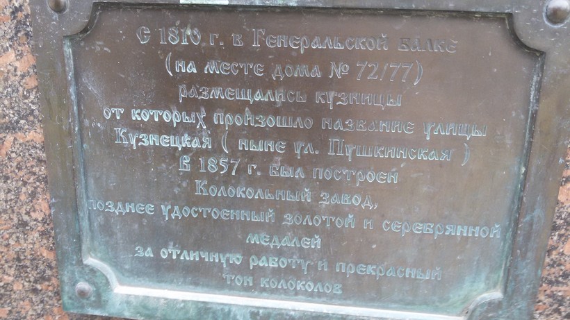 Есть на Пушкинской и свой «Царь-колокол». Преувеличила, конечно. Колокол небольшой, но зато познавательный. Табличка под ним вот что рассказывает: